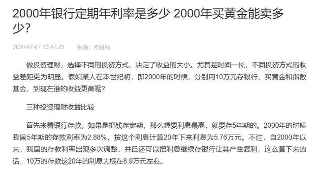 结果去商场看黄金,四年前300一克,现在快1000了,这钱存银行,怎么越存越不够用?”