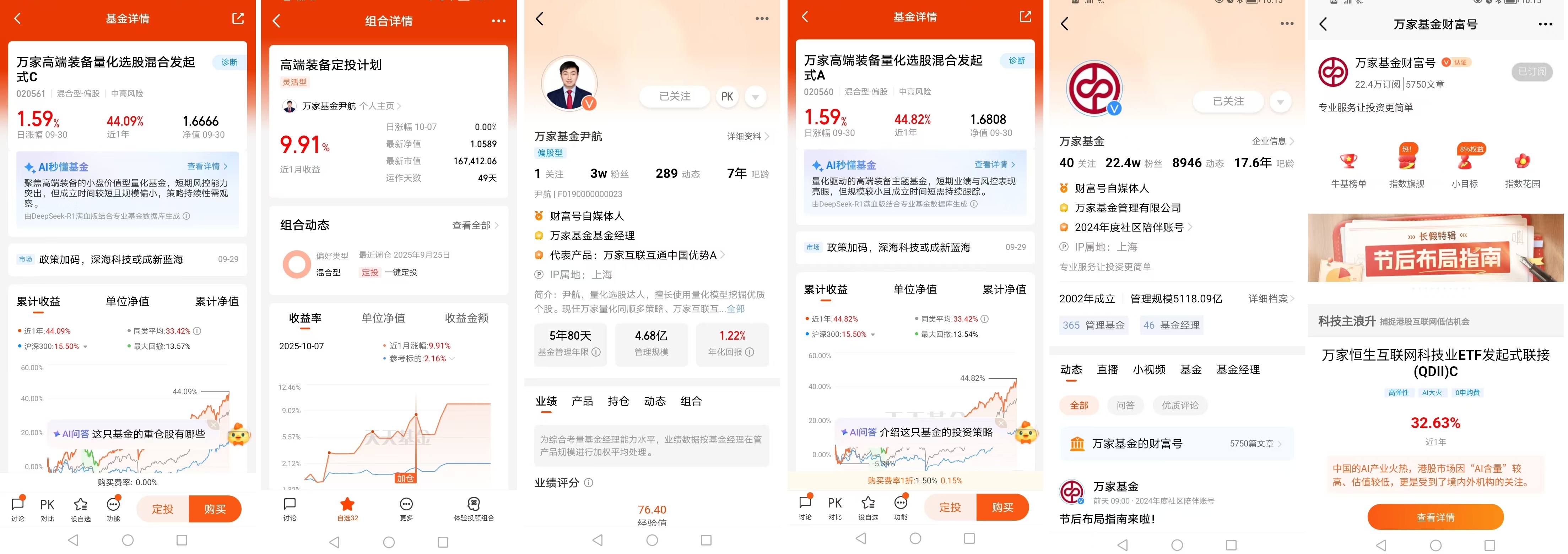 儿子还跟俺说,万家基金这些年拿过不少奖,就跟小区里年年评 “文明家庭” 似的,有分量。2023 年的时候,万家基金得了 “中国证券报” 评的 “年度稳健公募基金公司”,全国就十几家公司能拿到;尹经理管的万家高端装备量化选股混合 A,2022 年还得了 “上海证券报” 的 “三年期混合型基金明星产品” 奖,这些奖不是随便给的,得看业绩、看风险控制,这说明不光是俺们这些老人觉得好,行里人也认可。