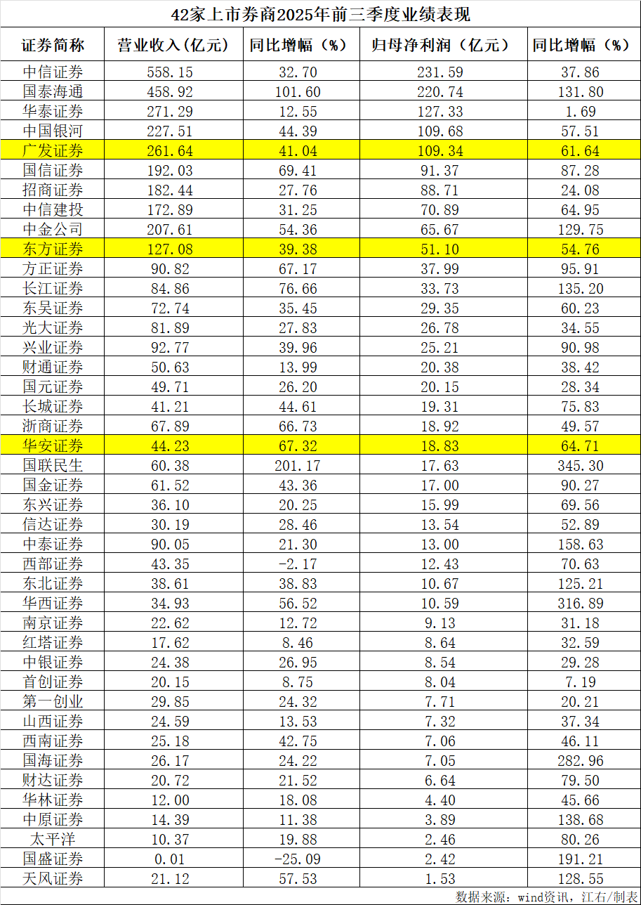 2025-11-03博鱼体育,博鱼体育官方网站,博鱼体育APP下载上市公司2025年三季报披露收官,42家纯券商上市公司业绩也随之出炉。由于股票市场持续回升,券商业绩普遍大幅增长,财富管理业务和自营业务是券商业绩增长的主要动力来源。