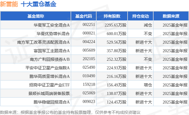 根据2025基金年报公募基金重仓股数据,重仓该股的公募基金共44家,其中持有数量最多的公募基金为华夏基金的华夏军工安全混合A。华夏军工安全混合A目前规模为38.4亿元,最新净值2.438(3月6日),较上一交易日上涨0.87%,近一年上涨73.4%。该公募基金现任基金经理为万方方。