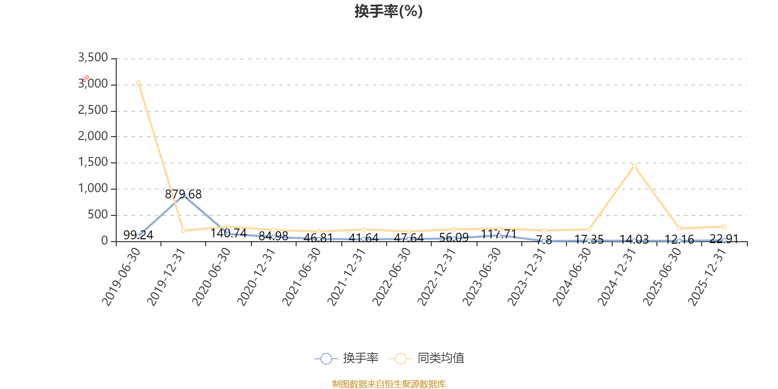 截至2025年12月31日,基金最近一年换手率约35.86%,持续6年低于同类均值。
