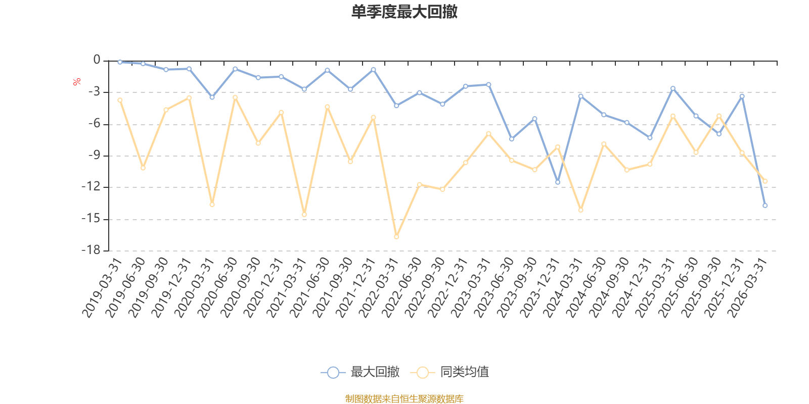截至4月9日,基金近三年最大回撤为16.62%,同类可比基金排名228/1264。单季度最大回撤出现在2026年一季度,为13.72%。