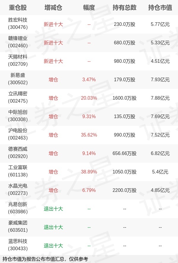 2026-04-26博鱼体育,博鱼体育官方网站,博鱼体育APP下载证券之星消息,4月22日东吴基金旗下刘元海管理的东吴移动互联灵活配置混合型基金公布一季报,近1年净值增长率155.97%。与上一季度相比,该基金前十大重仓股新增胜宏科技,赣锋锂业,天赐材料;并对新易盛增仓6.0万股,为该基金第一大重仓股;兆易创新,豪威集团,蓝思科技等退出前十大重仓股;详细数据如下: